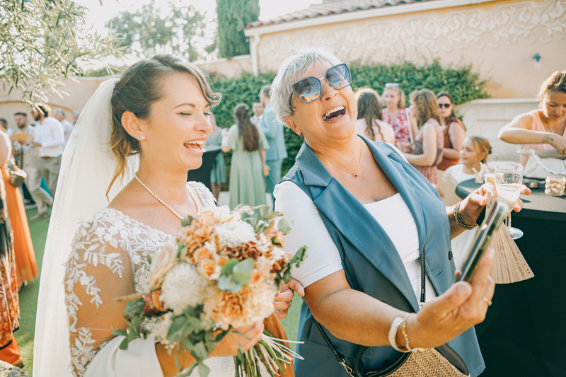 Vidéaste et photographe présents des préparatifs à la fin du vin d'honneur.