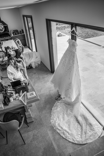 Incluant les photos des préparatifs de la mariée, Les photos à la mairie et/ou à la cérémonie religieuse, les photos de groupes, les photos de couples, les photos au vin d'honneur, les photos des tables, les photos pendant la soirée jusqu'à l'arrivée de la pièce montée.